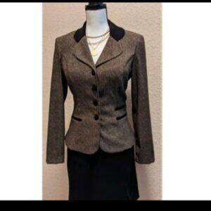 Ladies Skirt & Blazer Set Brown & Black- Nice! Skirt Sz 7/8 Blazer Sz 5/6