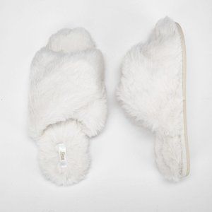 -Faux fur crossband slippers