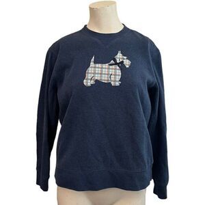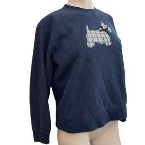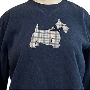 Ladies Small Scottish Terrier Crewneck Sweatshirt Scottie Blue Applique Bow Soft