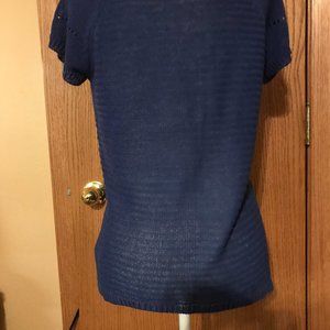 I always thought these would be ideal in the summer over a cami, w/ some capri's, just never got around to it. both are small, 75%Acrylic/25% Nylon, short sleeve, round neck, there is what I would call 1/2"-3/4" light ribbing on the ends of the sleeves & the waist. Tag is missing on the blue, UPC on the white is