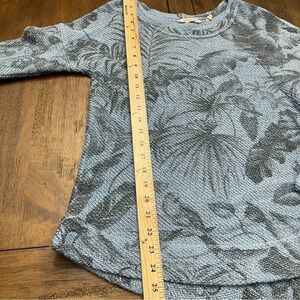 Ladies Soft Surroundings pullover sweatshirt. Blue and black floral print. XS. Super soft, EUC. please see pictures for approximate measurements. 97% cotton, 3% poly. Smoke free home.