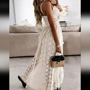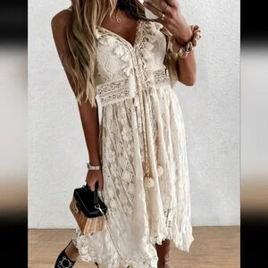 Ladies' Solid Color Lace Fringed Spaghetti Strap Dress