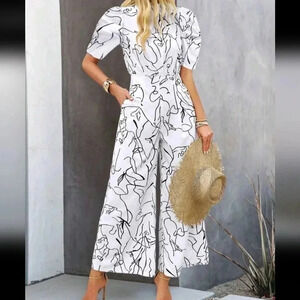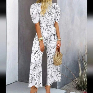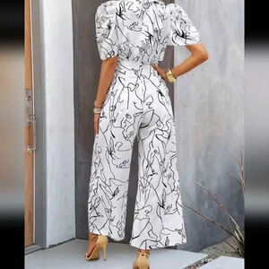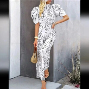 Ladies' Stand Collar Bubble Sleeve Printed Jumpsuit