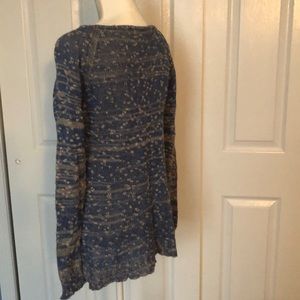 2 cute front pockets. 27” length . Sleeves are 26” long scoop neck. Beautiful blend of blue and beige. Looks great will leggings or jeans.