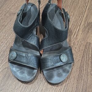 Ladies TAOS BLACK LEATHER WEDGE SANDALS 39