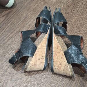 leathet wedge with Velcro closure. good pre-owned condition. please refer to photos for more details and measurements. Questions? Leave a comment below!