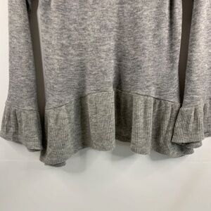 Ladies THMI, gray with brown accent cowl neck boho/western/coquettecore sweater