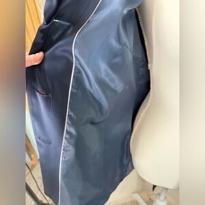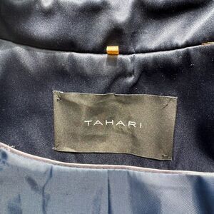 Ladies Tahari Trench Coat, Dark Blue Satin Portrait Collar Size Small Machine …
