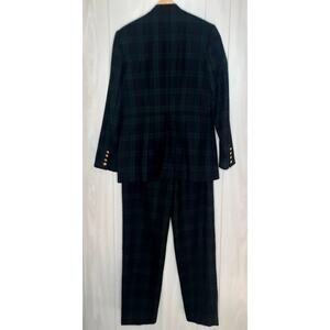 Ladies Talbots 2-Piece Wool Pant Suit Plaid Green & Black Size 4 Tailored Look