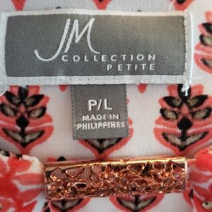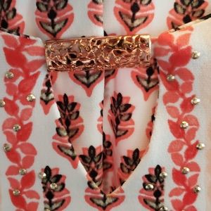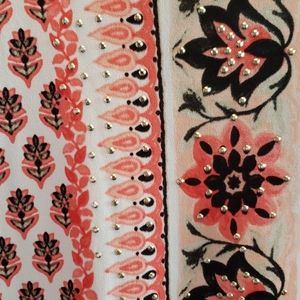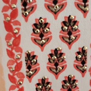 White Back Ground, with Coral and Black Design, With Rose Gold Rhinestones