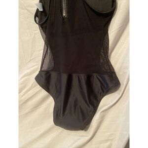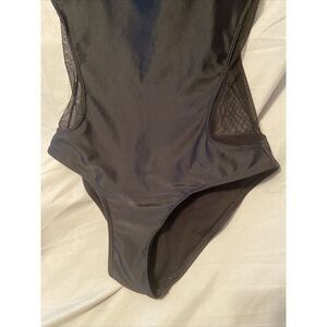 Ladies Top Melon One Piece Black Swimsuit Mesh On Front And Back Size Medium