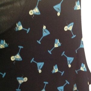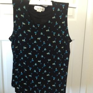 The second top is black with little blue & yellow martini glas design. Made of polyester and spandex. Size Large. Ronnie Nicole Sport brand. As you can see, both tops are sleeveless. Fun little designs for casual wear day or night or with a fun skirt or jeans.