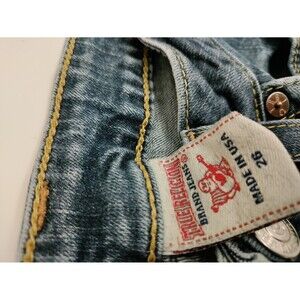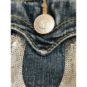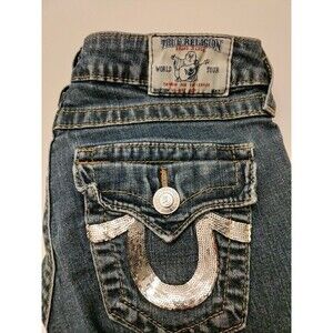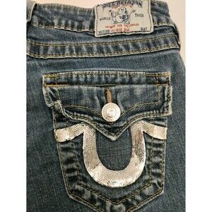 Elevate your denim game with these Ladies True Religion World Tour Jean Sequin Pockets. The slim fit jeans are crafted with quality materials and feature a solid blue color that is versatile enough to be paired with any outfit. The True Religion World Tour product line adds a touch of exclusivity to this must-have piece.
