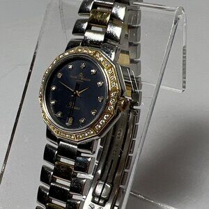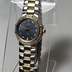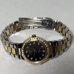 Ladies Two Tone Black Dial Baume Mercier Riviera Quartz Watch Diamond Dial Bezel