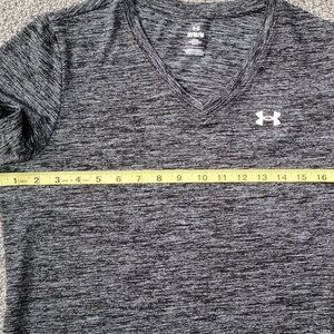 Ladies Under Armour Loose Black & Grey Variegated V-neck T-shirt Medium , Pre-Owned in Nice Condition!