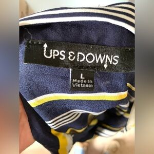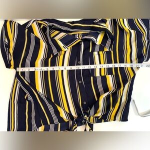 Ladies Ups and Downs Button Down Navy Yellow Striped Tie-Up Short Sz Large