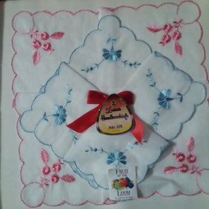 Ladies VIntage Hankies Embroidered In Gold Box With No Lid