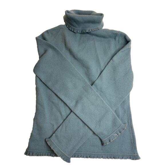 Ladies Vintage 90’s Baby Blue Wool Ruffle Turtleneck Sweater Size Small0