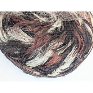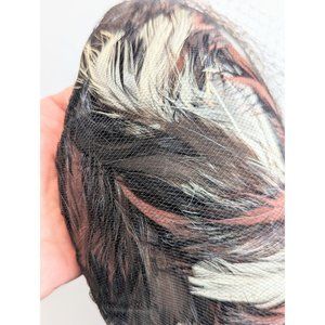 Ladies Vintage Brown Black Feather Hat 1960s Large Feathered Pillbox Hat MCM