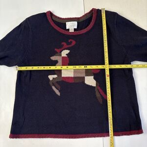 Ladies Vintage Christopher & Banks Navy W/Plaid Reindeer LS Sweater Size L
