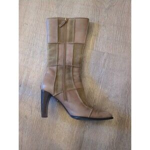Ladies Vintage Y2K Tan Patchwork Suede Leather Boots By Me Too Sz 7 Zipper