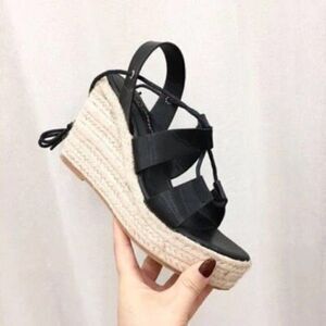 Ladies Wedge Sandals Leisure Strappy Platform Wedges High Heels Black High-Heeled Hemp Rope Woven Shoes Women Gladiator Heels