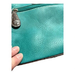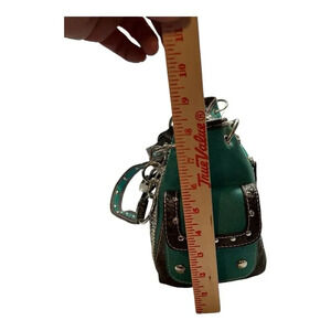 Western bling purse turquoise green concealed carry. This does have some really small scratches and a part where a tiny bit of bling is lifting up.