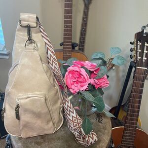 Ladies Western Boho Beige Leather Sling Bag Purse Adjustable Strap Brand New