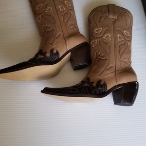 Make a fashion statement with this iconic Western inspired boot, and add a touch of cowgirl style to your casual looks. With a flattering mid calf length, an easy to wear stacked heel and gorgeous embellished details, this boot is playful and pretty, and will look fab with your favorite denim jeans.
