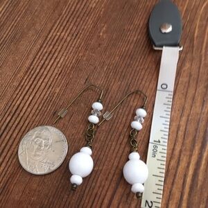 *Ladies White Beaded Dangle Earrings, Handmade Ladies Earrings