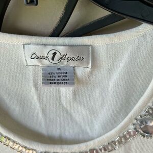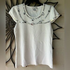 Ladies White Once 1 Again Sleeveless Sweater Top with Gems & Beads, Medium