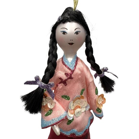 Ladies With Elegance 8" Glass Ornament Asian Geisha Girl Embellished Dress