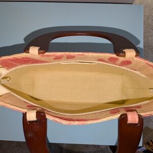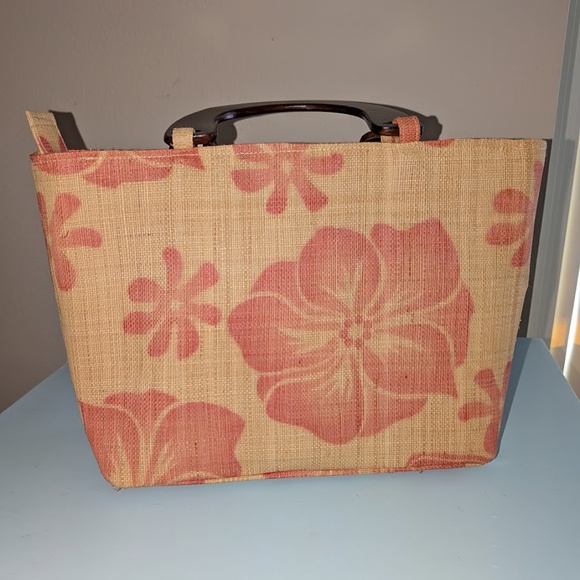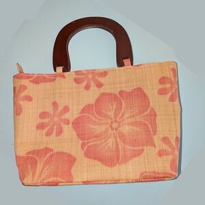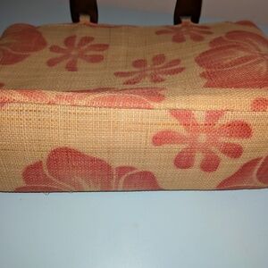 Cute summery raffia handbag with hibiscus Hawaiian pattern