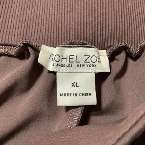 Rachel Zoe Pull-On Ankle Pants , pockets, side slits , preowned but show no signs of being worn., polyester and spandex, nice weight to the fabric.measurements above.looks like a roomy xl so check measurements I am not sure if the color, you be the judge, mauve, brown, purple. They have a perfume odor kind of like those scented trash bags, I will air them out see if that helps but washing will take care of it, just wanted to mention it.