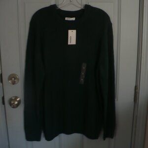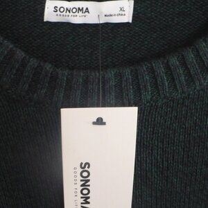 This is a ladies, dark green, pullover sweater. It is new with tags and is made by Sonoma. The size is XL, and the chest measurement is 56" from armpit to armpit, unstretched. This sweater can be machine washed on delicate cycle and laid flat to dry.