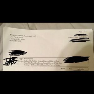 Ladies 14k Yellow Gold & Diamond Ring. (.17 ct. Round Brilliant Cut Center Stone) 4 Prong White Gold Setting w/10 Round Cut Channel Set Diamond Accent Stones. Smoke free home. I’m not sure of the exact size. I think it is a six. Easily sized up if size is too small by jeweler. Second picture is where it was appraised. I would be happy to include the invoice with the ring for insurance and/or appraisal reasons. Just stunning!