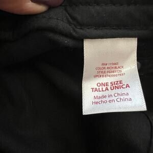 Ladies black cap with brim. Elastic in back for good fit. Cotton
