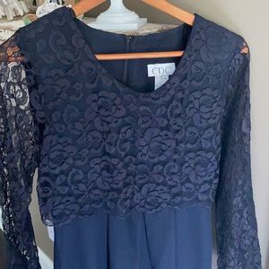 Ladies size 4 wide leg one piece pant suite. Absolutely adorable! Has shoulder pads but they can easily be snipped out. Lace overlay on the top portion and zipper down the back. Made in the USA. Comes from a smoke free home.
