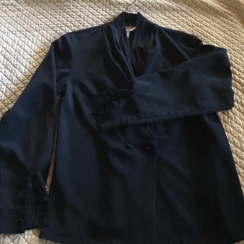 Cowl neck navy blue wrap blouse