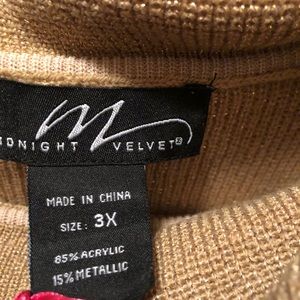 Beautiful gold new with tags ladies blouse. Scoop neck, cold shoulders, very flattering size 3x brand midnight velvet.