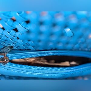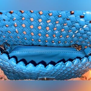Ladies blue purse, strap & handle Magnetic closure Expressions NYC zip inside