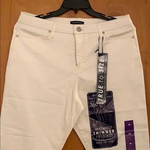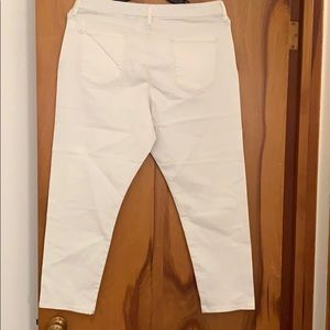 Beautiful white capris. New with tags. Button zip waist band. Pockets front and back. Very nice addition to your wardrobe😊👍