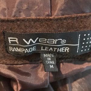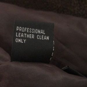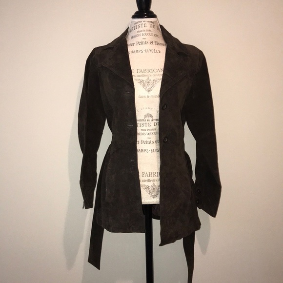 Good used condition ladies leather coat with tie belt. One of the pockets had a hole. Picture of brand and other details posted in photos.