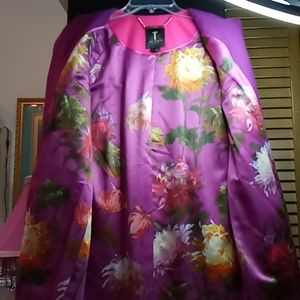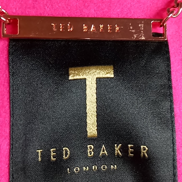 Beautiful Authentic Ted Baker Mawd wool blend cocoon coat magenta floral print Lining has collarless found neck metallic gold buttons & outside patch pockets size 1 however it's roomie in size not a tiny size1 very classy indeed!