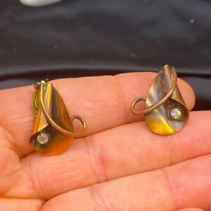 Ladies copper claps back earrings with CZ stone accents