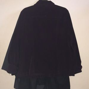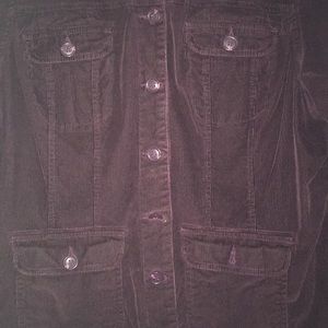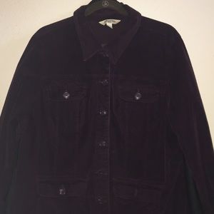 Never worn ladies corduroy burgundy jean like jacket. Buttons and 4 front flap pockets 1X. Color is marroon burgundy. Perfect condition