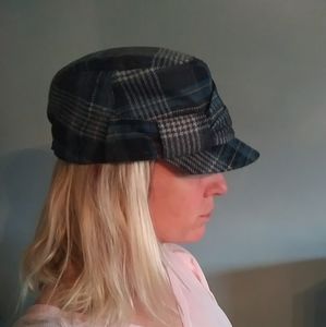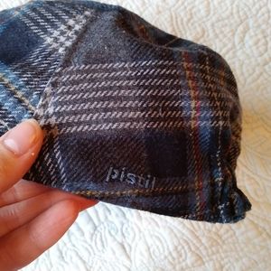 Swag-worthy pistil brand, wool hat. Blue/gray plaid with swanky stitched 'bow' at right side. Interior circumference measures approx 21.5". There is elastic in back for a little extra room.