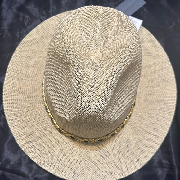 Nice straw hat new never worn with ticket. Has black trim