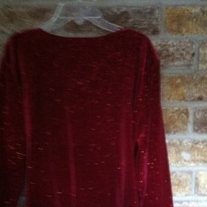 New with tags ladies holiday blouse. Red velvet material with glittery threads throughout. Size 14 by R&K. Purchased at Macy's
