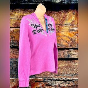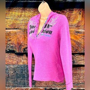 Very nice ladies hooded HD pink long sleeve sweater with upper buttons as pictured